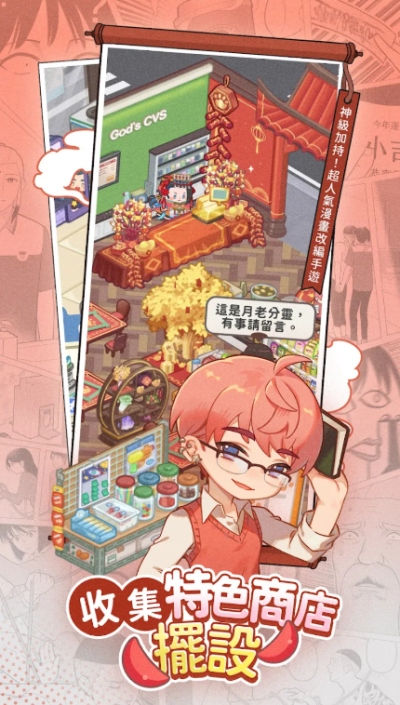 神明便利商店官方正版最新版是一款卡通风格的模拟经营手游,游戏以一家平凡的便利商店为背景,却揭示了人神共存的奇幻世界。主角神元君因接获妈祖娘娘指派的任务,进而成为便利商店的店长,游戏中描述了众多神明共同在便利商店的趣味日常,以及他们面对来访的人类顾客、众神,甚至是鬼怪的莅临时所解决的需求与挑战!