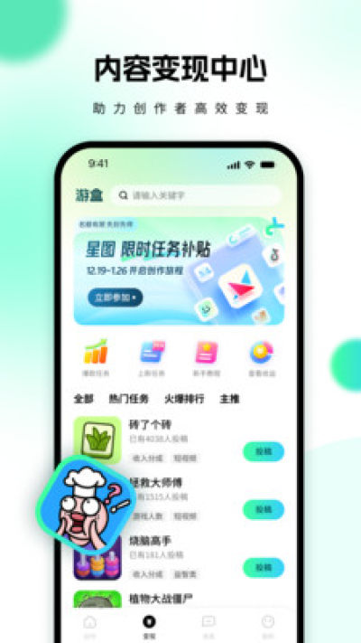游盒为游戏达人提供更便捷的创作和推广变现的APP。