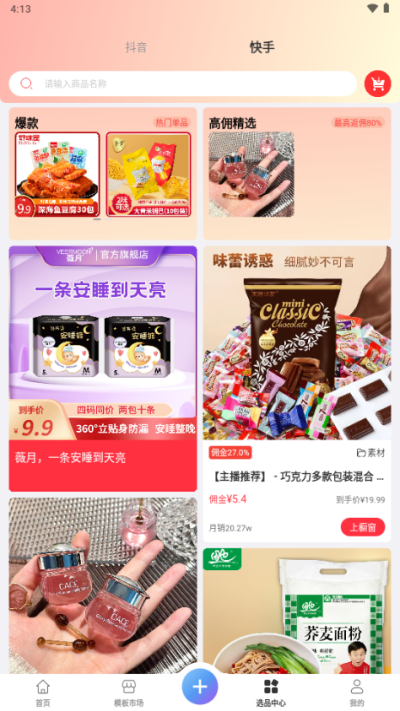 6、【选品中心】:优质源头好货,支持在线选品开播