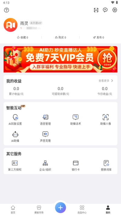 7、【直播间模版市场】:支持发布和购买直播间模版