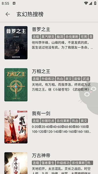 找到小说后,点击进入阅读页面。哇,小说页面好清爽,没有广告打扰,读起来真舒服!