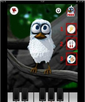ps:这款游戏还有弹钢琴的功能,点击屏幕下方的钢琴按键(图示处),拉里鸟会发出不同的声音哦~