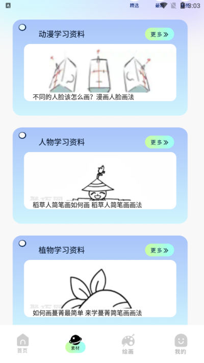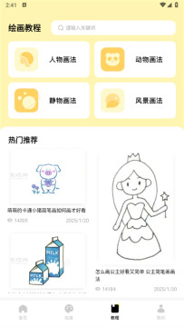 5、不懂的朋友可以在教程页面学习不同的绘画方法
