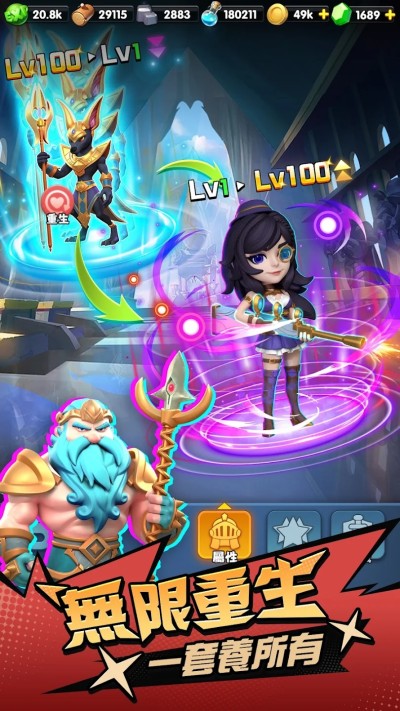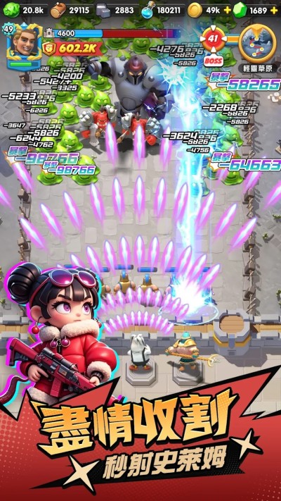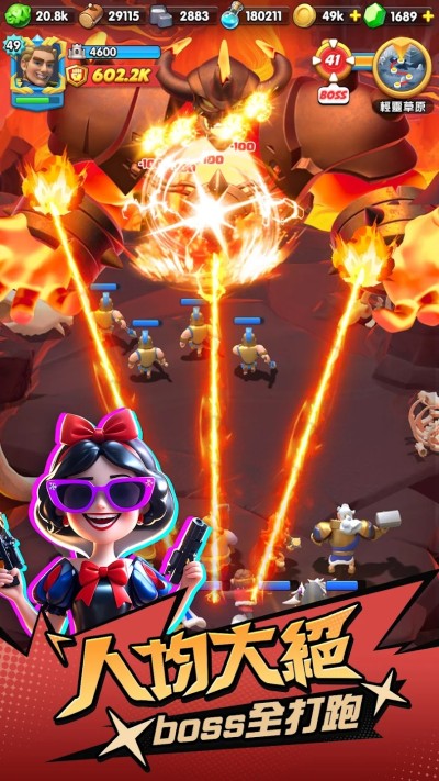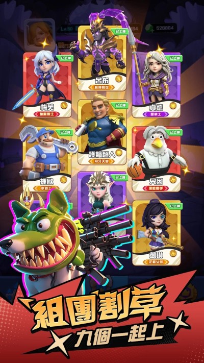 最多可以九个角色齐齐上阵,通过不同职业和技能组合,快速消灭成群的敌人体验割草般的爽快感。技能搭配和范围攻击是这个玩法的重点,可以快速清理地图完成目标。