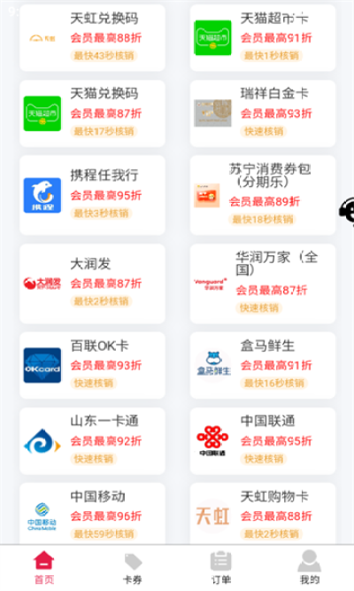3、涵盖加油卡、话费充值卡、商超购物卡、电商礼品卡、视频会员卡、游戏充值卡、影音兑换券、美食优惠券等超百种卡券类型。