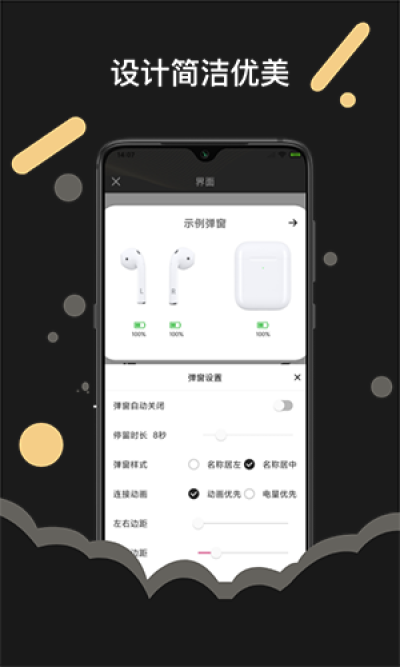用户能够专注于最重要的功能——查看电量和设置触控操作,提升了整体使用体验。