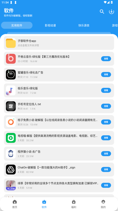 分类清晰:软件按类别进行分类,如工具、游戏、影视、小说等,用户可以通过分类快速找到所需资源。