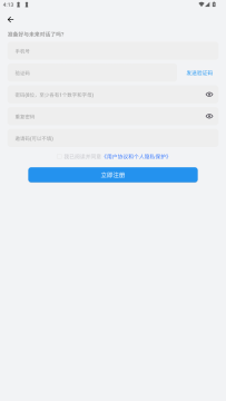 3、输入手机号和验证码等信息,设置好密码点击立即注册即可(邀请可以不填)