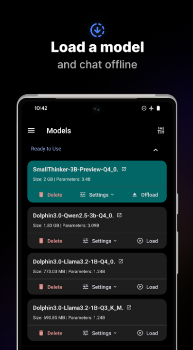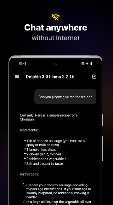 - 离线聊天:直接在您的设备上与高级人工智能模型交互,无需互联网连接。