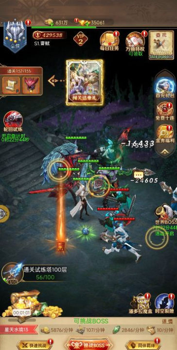 挂机系统,贴心的护肝体验;快速挑战,坐享海量收益;装备、养成材料轻松获取!