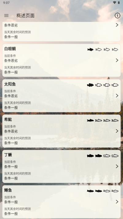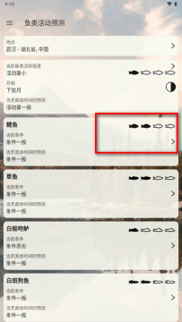 4、通过点击鱼类活动预测功能,您可以了解到每种鱼类在当前环境下的活跃程度,这有助于您更好地规划钓鱼策略
