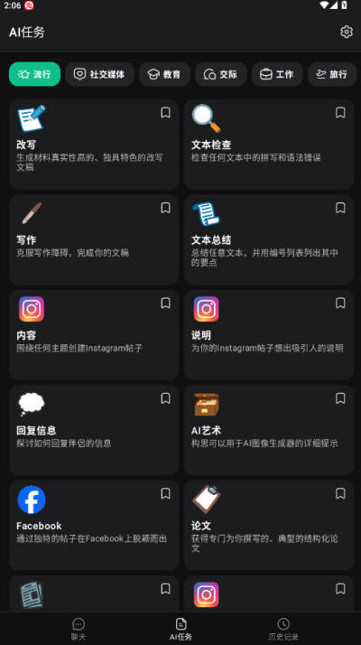 您可以立即开始AI聊天——这款基于GPT-4o和GPT-4构建的应用程序具有简单的操作界面,可以让你立刻与AI对话。只需输入你的请求,或从100多个预设的提示中选择,机器人就会替你完成枯燥繁琐的写作程序。