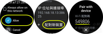 若正常有连线到同一个网路下的手机,请按Allow同意连线,再点击配对新装置,此时请记下Wi-Fi配对码,接下来手机上会需要输入这些资料。