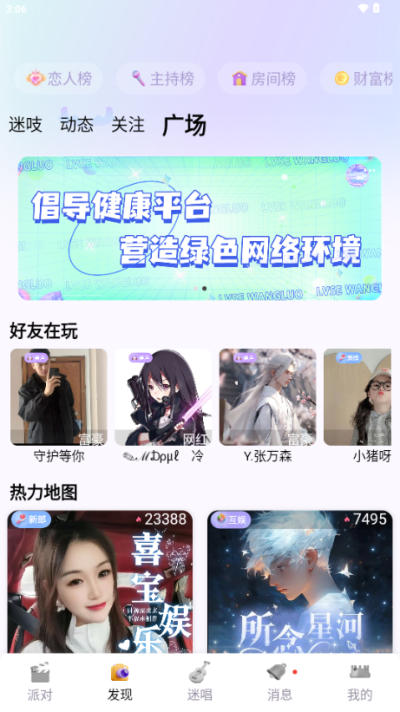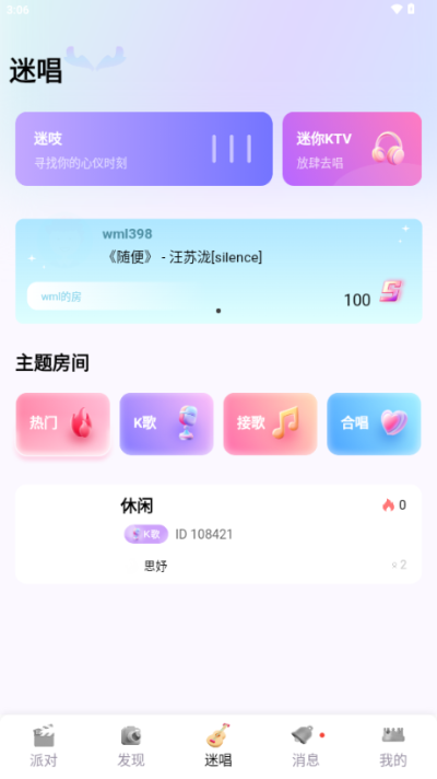 迷人语音app是一款安卓手机免费语音交友平台,软件中有着海量的趣味玩法等你体验,平台支持视频、语音等多种连麦互动形式,用户可以快速加入活跃的聊天房间,对软件感兴趣的话不妨点击下载试试!
