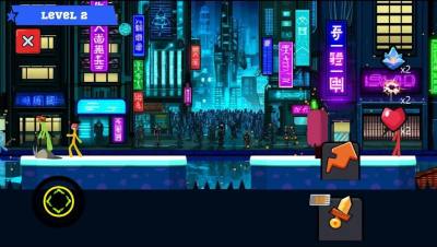 玩家在游戏中操控一个火柴人,利用简单的横版摇杆操作操控火柴人进行热血格斗。