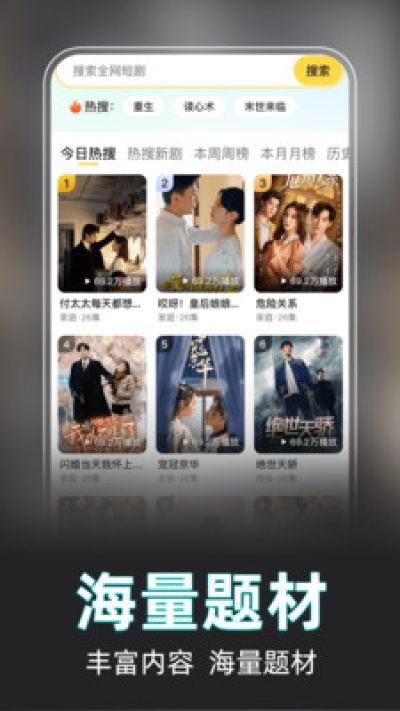 短剧排行榜:实时更新的排行榜,让你掌握最新流行趋势,不再错过任何热门短剧。
