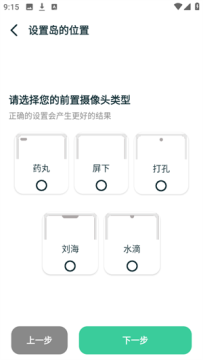 3、在首页中点击设置岛的位置,自定义选择前置摄像头类型