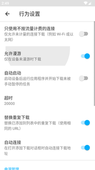 提供电源管理和电池控制选项,优化下载过程中的电量消耗。