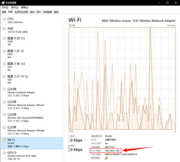 5、我们需要知道自己的IP地址,一定是要自己正在使用的网卡的IP地址,我当前使用的是WiFi,所以在下方看WiFi的IPv4地址,如果是使用的有线连接或其他类型的连接在其中找到你正在使用的以太网的IPv4即可。如果想要程序员一点的方法查看IP,可以在命令行中输入