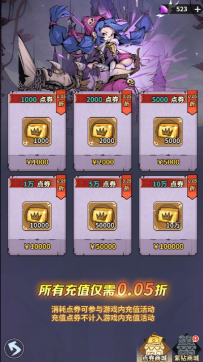 超低折扣:游戏提供终身0.05折优惠,充值比例高达1元:10游戏货币,性价比极高。