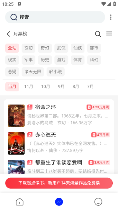 在这阅读会供你畅游在各种题材的纷繁世界中,榜单中也能让你随时随地看到最火的小说;