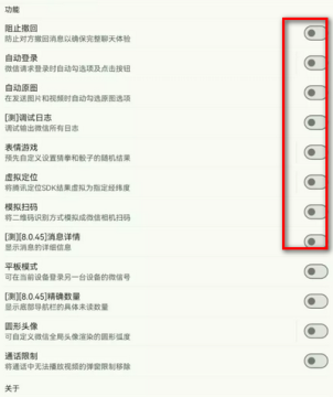 3、然后就可以在WAuxiliary微信模块中开启相应的功能。
