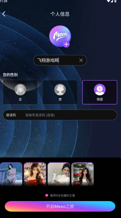 3、完成注册后,设置昵称、性别等信息开启软件;