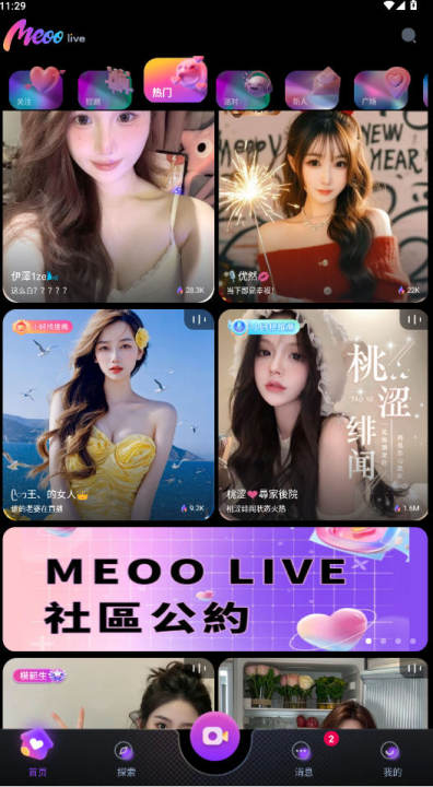 Meoo live最新版下载2025安卓版这里不仅是一个视频直播平台,更融合了火爆短剧和交友功能,为您打造全方位的娱乐社交体验。在这里,您将邂逅众多高颜值的帅哥美女,沉浸于扣人心弦的短剧剧情,还能参与趣味横生的游戏,并通过特效礼物传递您的爱意与赞赏。
