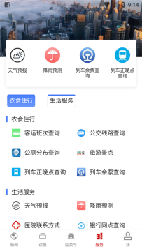 3、我们可以通过韶关发布app的服务功能来获取到衣食住行等多个方面的生活服务。