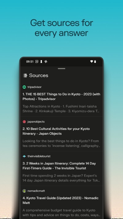消除混乱,直接获得可靠的最新答案。这款免费应用程序可跨设备同步,并利用 OpenAI 的 GPT-4 和 Anthropic 的 Claude 2 等人工智能的力量。您以更智能的方式了解和理解。