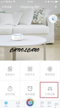 1、找到手机上的叮咚音箱APP并打开。进入到设备的设置界面,如下图所示。