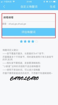 4、自定义唤醒词界面,可以设置新的唤醒词,输入4-6个汉字就可以了。