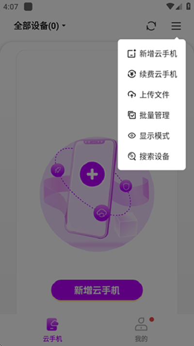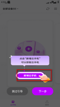 4、进入软件后点新增云手机。
