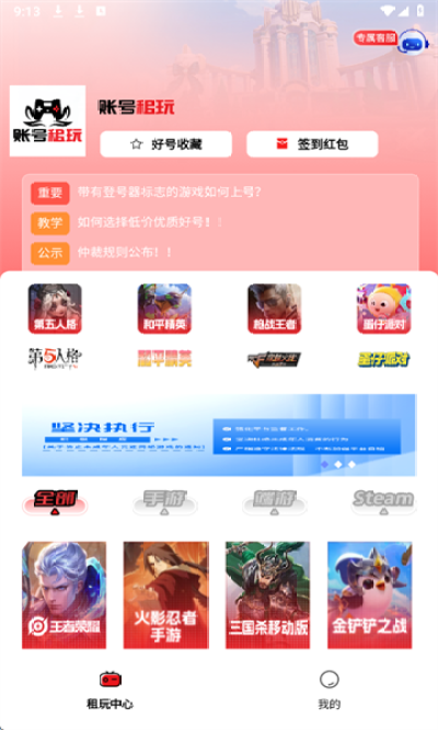 账号租玩app是一款安卓手机游戏账号交易平台,软件中有着海量的实用功能等你体验,用户可以在线筛选自己感兴趣的账号资源,汇聚全网热门游戏,使用起来非常方便!对软件感兴趣的话不妨点击下载试试!
