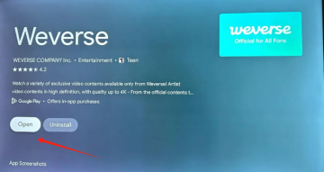 点击搜索结果中的weverse图标,这应该会下载weverse app的安装包。接下来可能会问你用哪个软件打开安装包,我选择的是Google App Store。选完后点击“install”。