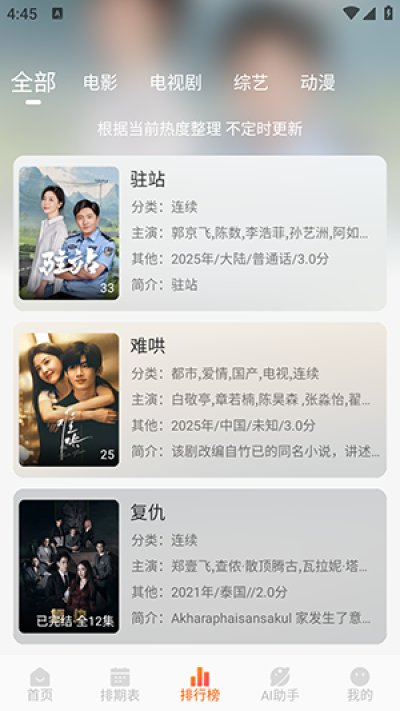 wave追剧影视不仅支持电影、动漫等常规视频类型,还涵盖了剧集等更多元化的内容。无论是热门的韩剧、美剧,还是小众的日剧、泰剧,你都能在这里找到。此外,该应用还不断更新,确保用户能够第一时间观看到最新的影视内容。