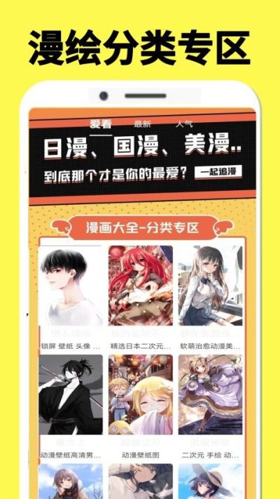 1、漫画主题分类清晰明了,手机上一键开启选择更自在,获取不同壁纸的方式简单快捷。