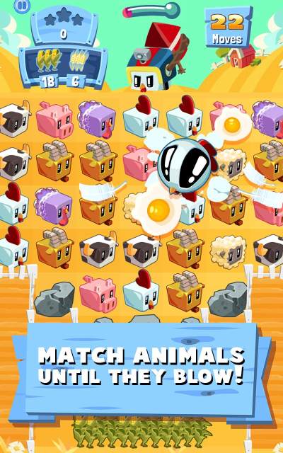 牧场方块是一款非常萌的方块消除手游,游戏将农场中的动物们都以原创的Q版方块形象重现,有趣的消除关卡以及丰富的道具玩法值得你期待,超卡哇伊的角色设定萌你一脸血哦!
