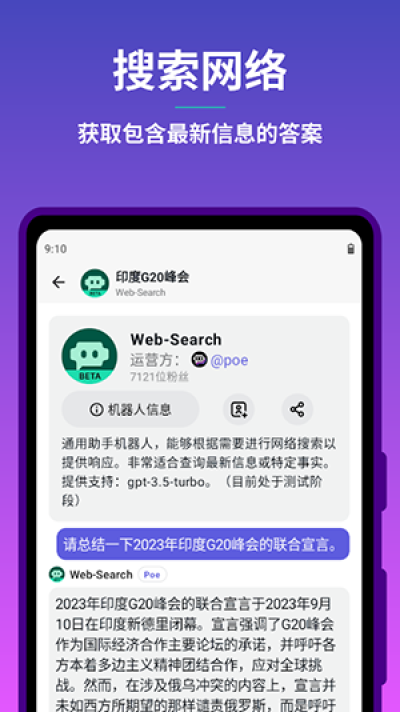2、通过先进的自然语言处理和网络搜索技术,Poe能够提供高度相关的结果。