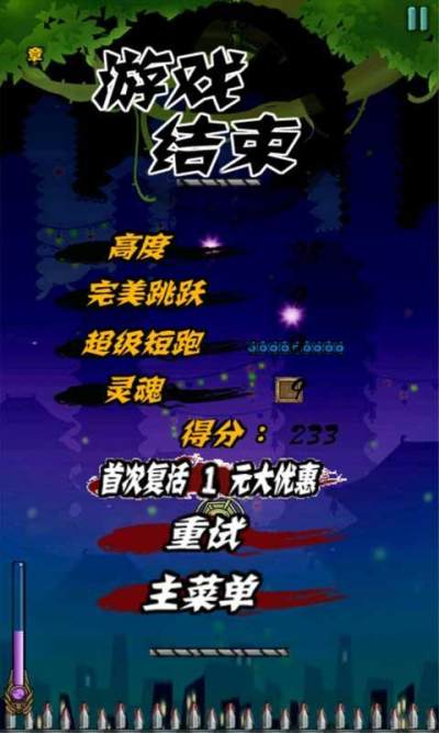 飞天无敌忍者是运行在安卓平台下的一款动作冒险游戏,游戏画面唯美,玩法简单易上手!游戏节奏有点快,有兴趣的可以来尝试下!来试试吧!