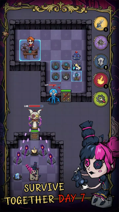在闹鬼的城堡中休息绝非易事,但它对于赚取金币以解锁防御和升级至关重要。有策略地使用床,但要小心放松警惕带来的风险。当你探索时,你将解锁新的房间,发现隐藏的秘密,并收集你需要的工具,以确保你的令人毛骨悚然的生存之旅继续下去。