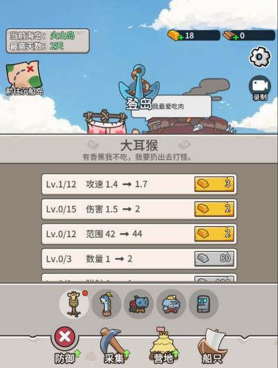 3、荒岛上的每个夜晚都将出现可怕的怪物,你需要招募防御伙伴,保卫三兄弟营地的安全!