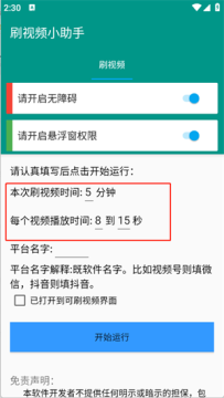 用户可以根据需求自由设置每个视频的浏览时长,支持固定时长或随机时长模式。