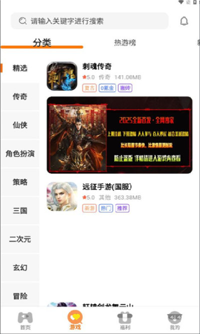 *平台上会有着不同的游戏分类,有仙侠类,传奇类,卡牌类和休闲类手游。