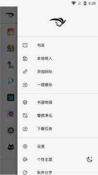 2、在侧边栏中拥有导入书源,设置,下载管理等功能;