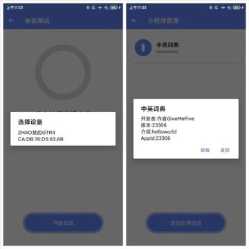 4、安装完成后,你可以在“小程序管理”界面中查看到你安装的小程序。点击任意小程序,你将有选择卸载该小程序的选项。