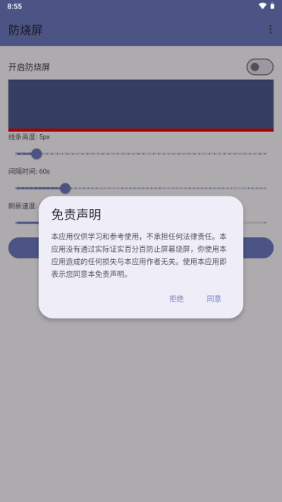 1.下载安装防烧屏app,之后打开,同意软件公告;