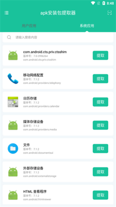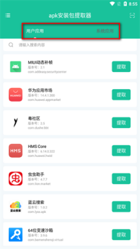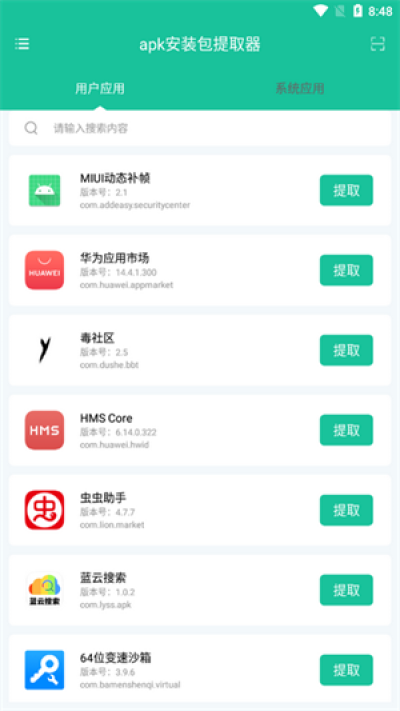 2、打开进入软件,选择用户应用或者系统应用进行提取