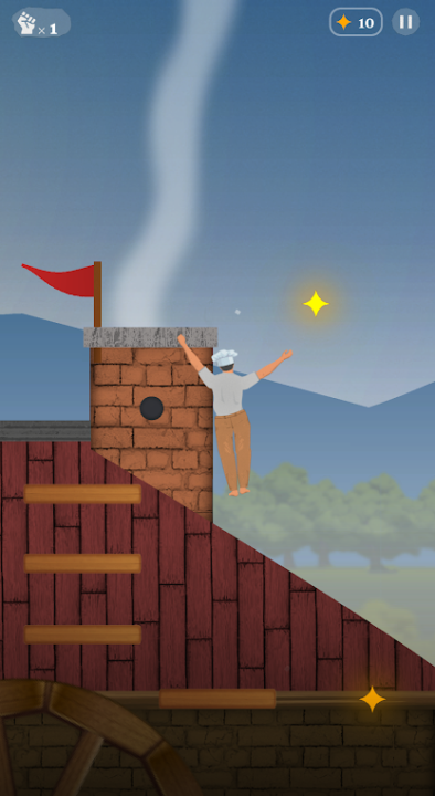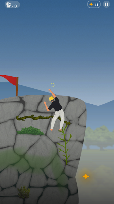 6、左右手臂交替抓住墙壁来让角色向上攀登,抵挡最高处触摸旗帜就可以通关。