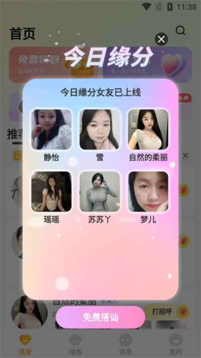 1.全新的在线社交平台,拥有多种约会模式,随时随地在线交友互动,满足不同用户的社交需求